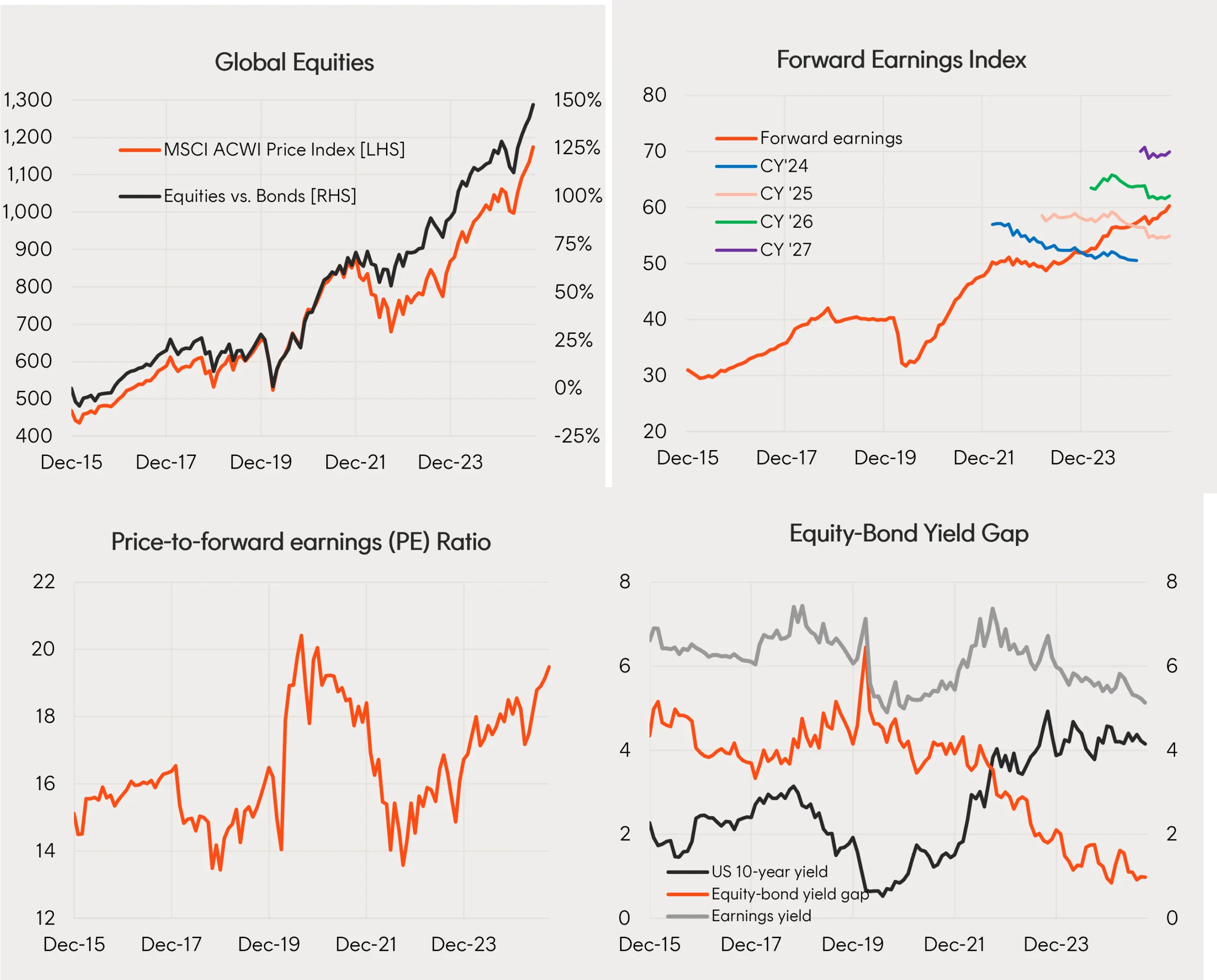 - Earnings expectations edged up a little further in September following downgrades earlier this year. Current earnings expectations remain consistent with solid 16% growth in forward earnings by end-2026.