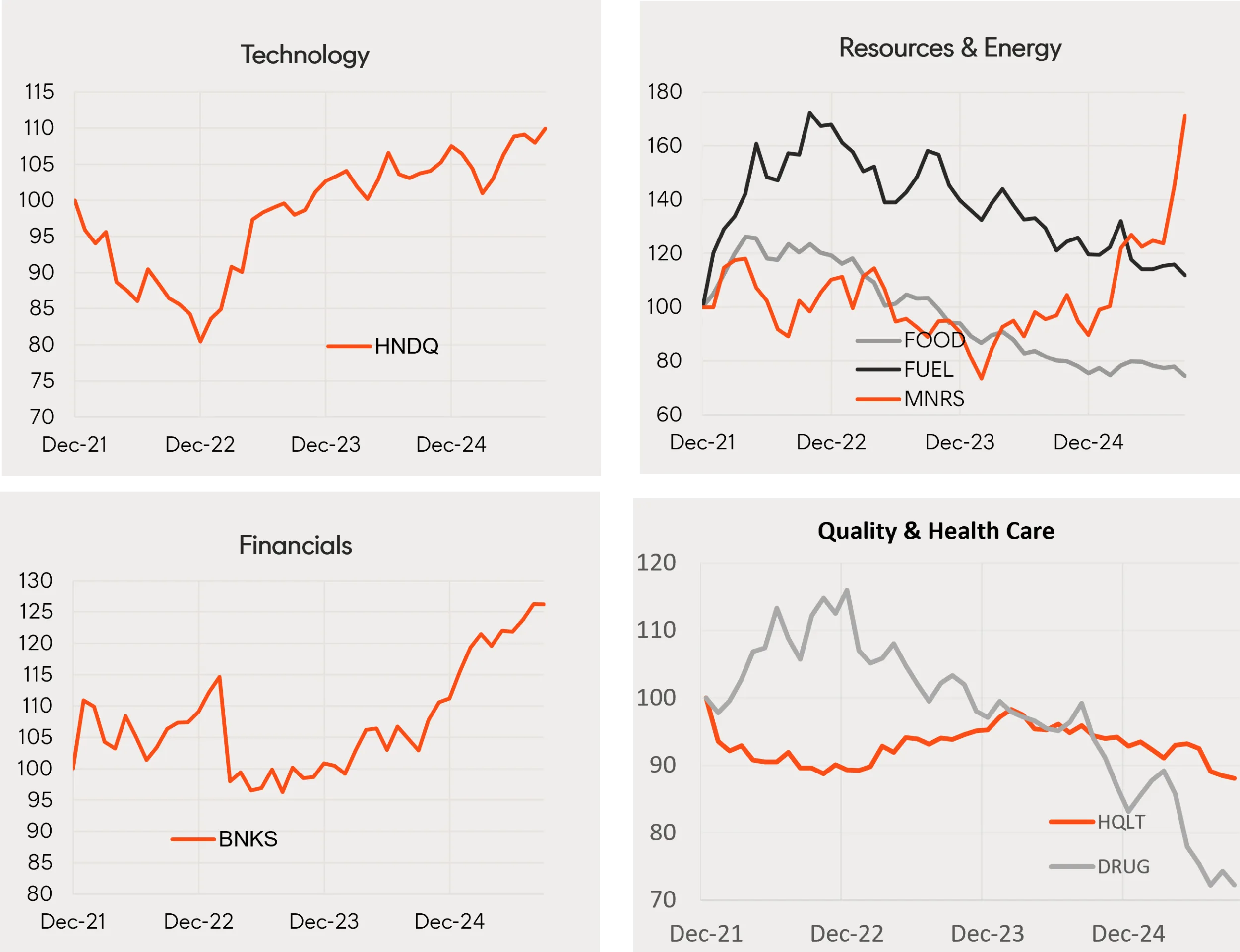 Source: Bloomberg, LSEG, Betashares. Relative performance versus the S&P/ASX 200 Index for the indices which the relative ETFs track. You cannot invest directly in an index. Past performance is not an indicator of future performance.